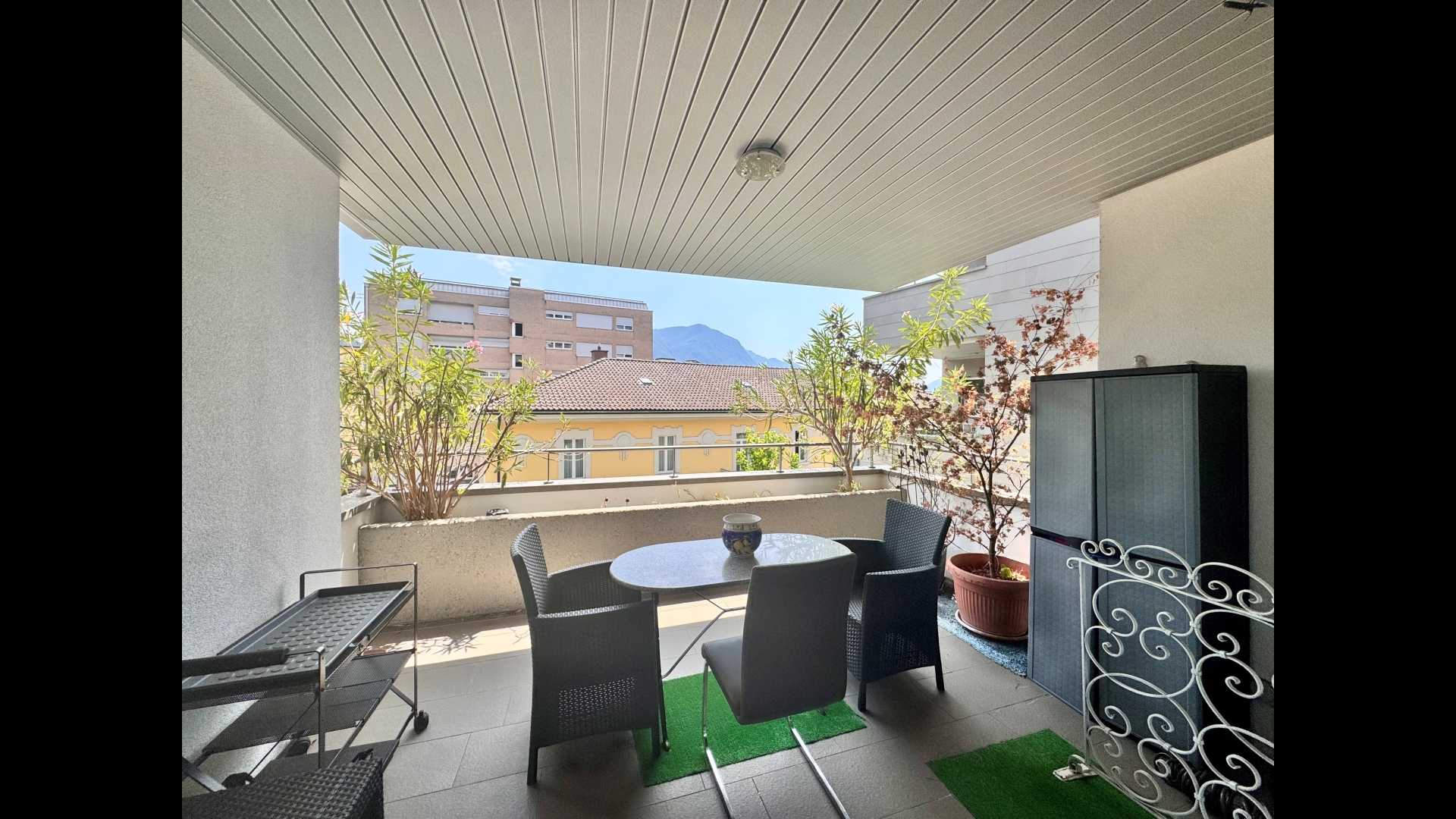 Dalla camera padronale si accede al secondo balcone coperto di ca. 14 m2 che offre una bella vista aperta in un contesto riservato.