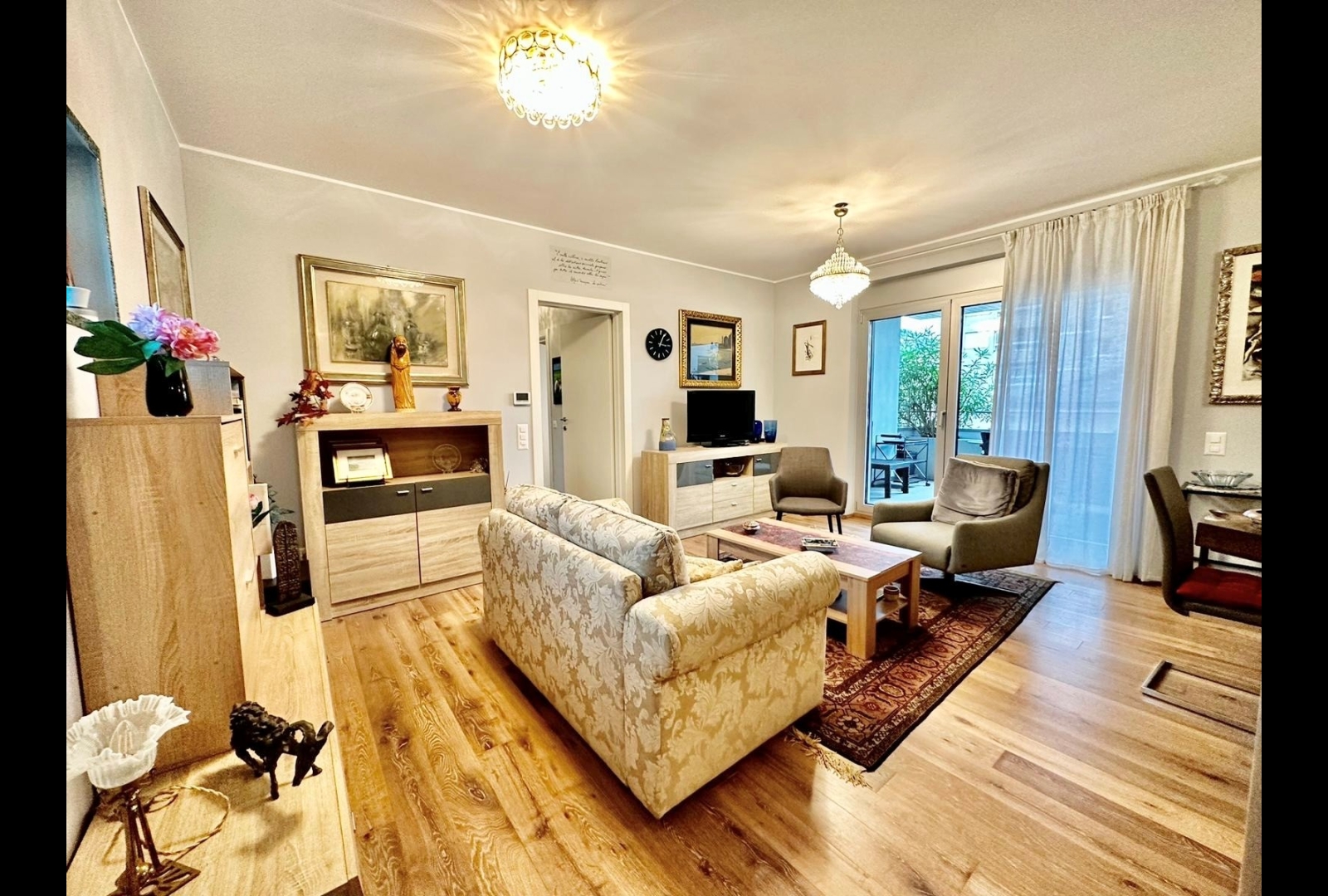 Zona giorno con uscita sul primo terrazzo coperto di ca. 14 m2