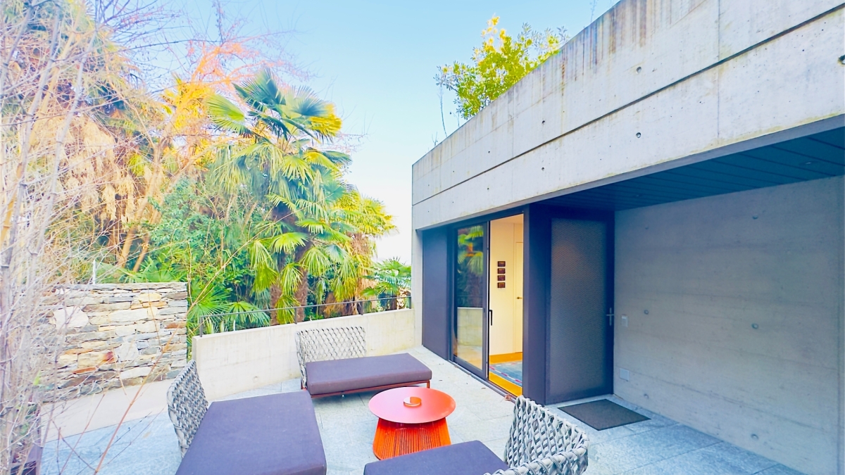 Terrazza con vista sul lago e loggia interna in completa privacy.